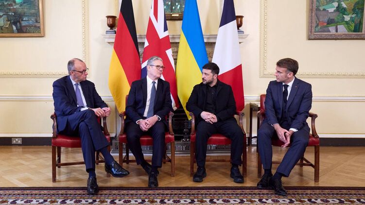 Приблизно через годину після початку переговорів Мерц і Макрон залишили резиденцію британського прем'єра, залишивши Зеленського зі Стармером.