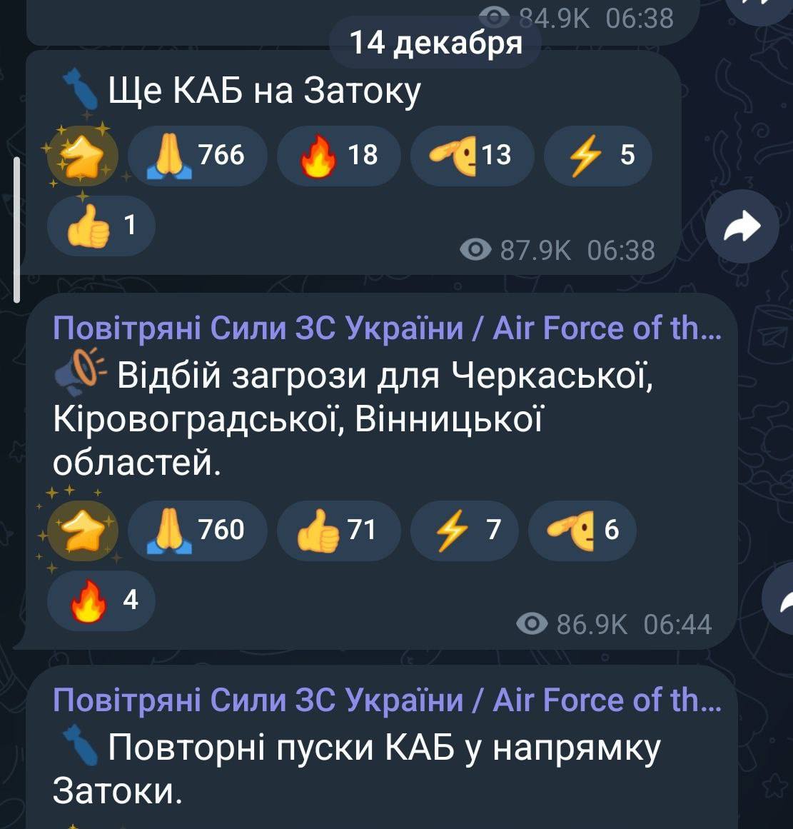 Вони повідомляли про пуски авіабомб у напрямку Затоки (російські паблики стверджують, що метою був неодноразово атакований раніше залізничний міст).