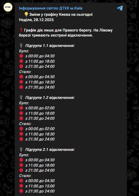 12:40 Нові графіки відключення світла для правого берега Києва.