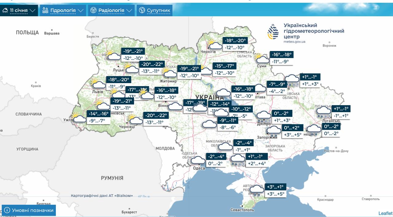 "Протягом вихідних у нас відбуватиметься вторгнення арктичного повітря з північних широт", - повідомила Птуха. У західних, північних областях, а також у Вінницькій та Черкаській областях температура вночі може знизитися до 14–20 градусів морозу, подекуди — до -23. Вдень очікується від 9 до 15 градусів нижче за нуль.