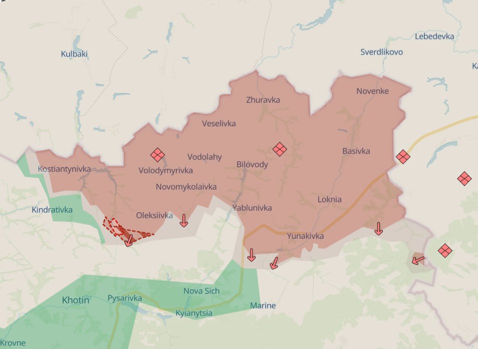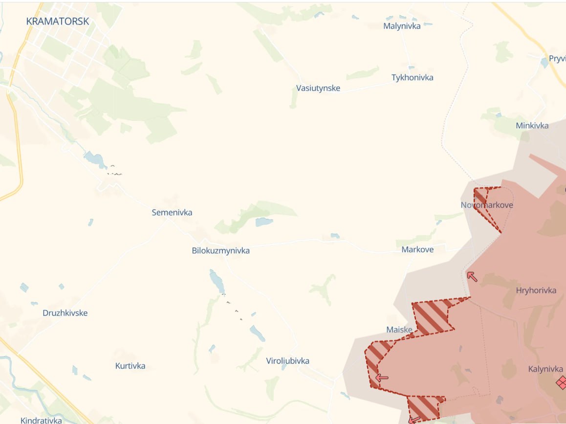 До ситуації на фронті. Армія РФ захопила Андріївку Сумської області та Новомарково на Краматорському напрямку, повідомляє Deep State.