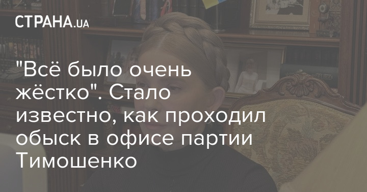 "Все було дуже жорстко: застосовували силу, не звертаючи уваги на те, хто перед ними, забрали телефони у самої Тимошенко і всіх, хто був в офісі, зібрали комп'ютери. При цьому у них не було рішення суду – взагалі будь-якого документа, яким вони могли б пояснити свої дії. Знайшли гроші. Юля відповідає, що це частина її задекларованих коштів. Але вони викладають долари".
