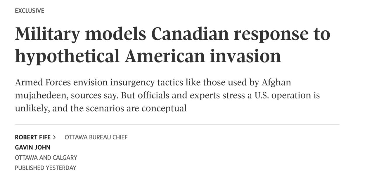 Це перший випадок за сторіччя, коли канадські збройні сили утворили модель американського нападу. Хоча джерела видання стверджують, що президент США Дональд Трамп навряд чи накаже про вторгнення до Канади.