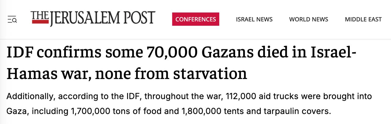 Армія оборони Ізраїлю (ЦАХАЛ) визнала загибель 70 тисяч жителів сектору Газа в ході конфлікту з ХАМАС, але заперечила оцінки ООН щодо частки цивільного населення серед цих жертв.