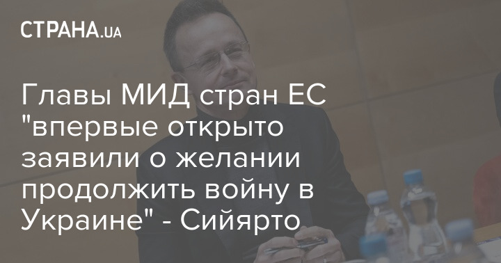 Глави МЗС країн ЄС "вперше відкрито заявили про бажання продовжити війну в Україні" - Сійярто