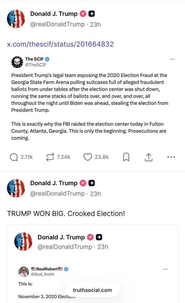 Обшукам ФБР в Атланті Трамп присвятив понад десяток постів у своїй соцмережі Truth Social.
