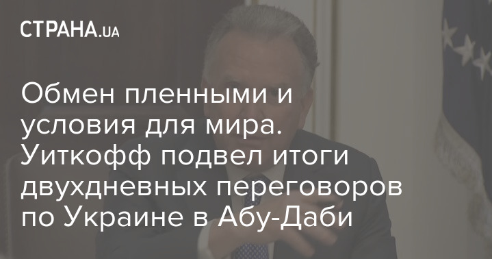 Обмін полоненими та умови для світу. Віткофф підбив підсумки дводенних переговорів щодо України в Абу-Дабі