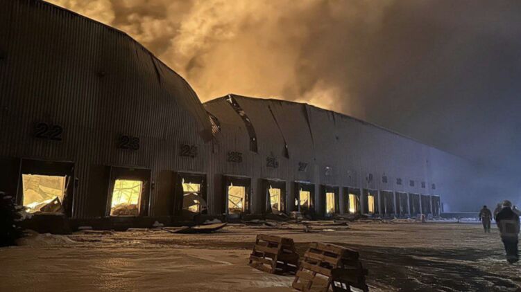 Сьогодні вночі російський "Шахед" ударив по складу "Рошена" у Яготині Київської області. Внаслідок влучення на місці почалася сильна пожежа.