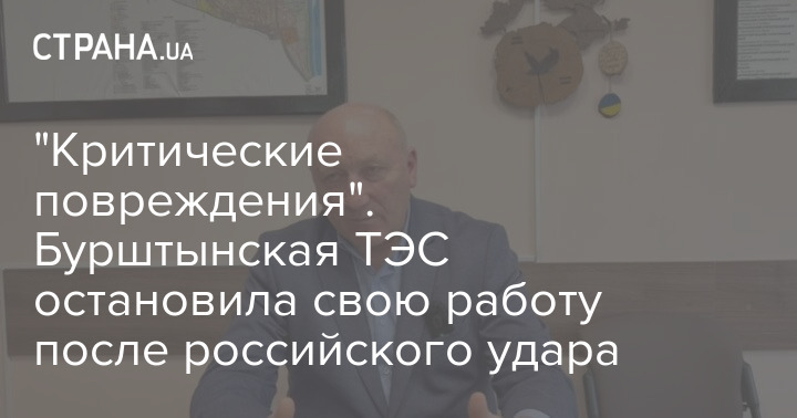 За його словами, станція отримала критичні пошкодження, внаслідок чого у Бурштині зникли тепло та водопостачання. Воду у місті обіцяють подати протягом кількох годин, тепло – після оцінки стану ТЕС.