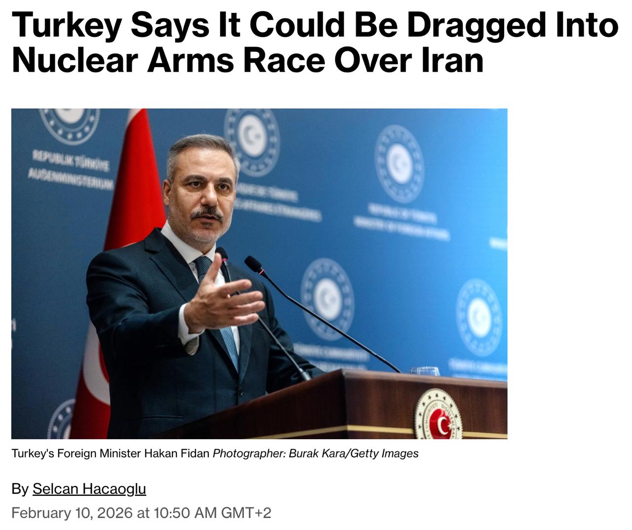 При цьому Фідан запевнив, що Анкара не бажає порушувати тендітний баланс сил у регіоні, що може спровокувати ядерну конкуренцію.