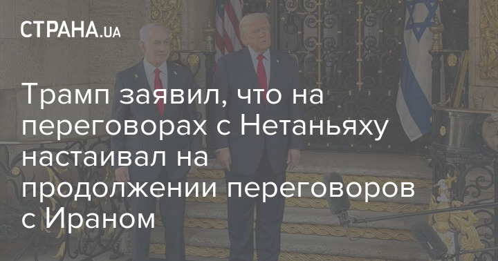 Президент США Дональд Трамп заявив, що на переговорах із прем'єр-міністром Ізраїлю Беньяміном Нетаньяху наполягав на продовженні переговорів з Іраном.