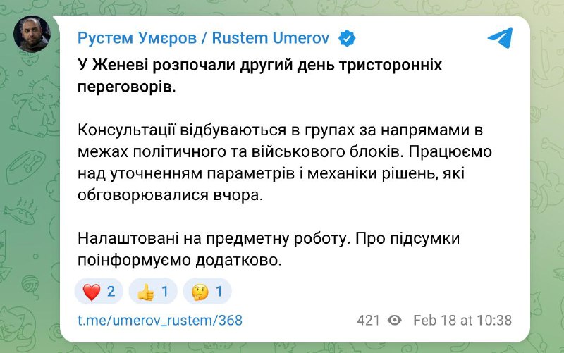 У Женеві другий день тривають переговори. Фото: телеграм-канал Рустема Умерова