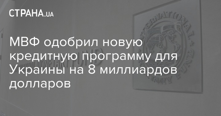 Рада директорів Міжнародного валютного фонду затвердила для України нову 4-річну кредитну програму в рамках механізму розширеного фінансування (The Extended Fund Facility, EFF) загальним обсягом $8,1 млрд. Перший транш $1,5 млрд буде виділено негайно.