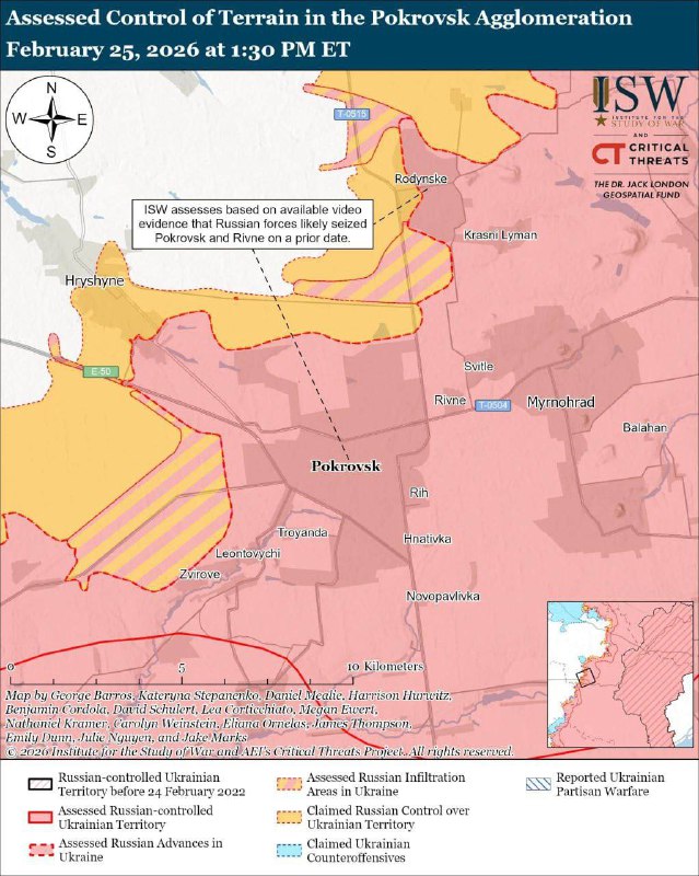 За даними аналітиків, захоплення населеного пункту відбулося протягом кількох останніх тижнів, а присутність українських військ у Покровську востаннє фіксувалася 28 січня.