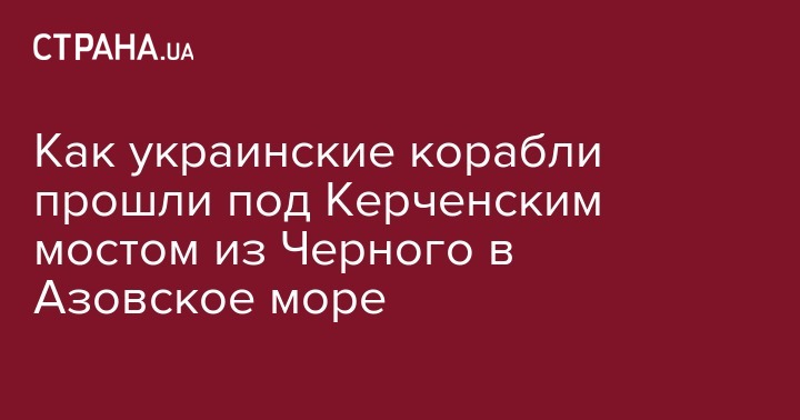 Украинские корабли "Донбасс" и "Корец" совершили проход через контролируемый россиянами Керченский пролив, где прошли под Крымским мостом из Черного в Азовское море - украинские суда вошли в канал в 13.50 и прошли пролив в 15.15.