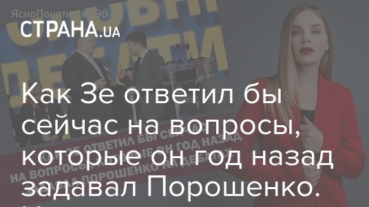В новом выпуске блога "Ясно.Понятно" Олеся Медведева решила предположить, как бы сам Зеленский сейчас ответил на те вопросы, которые он задавал Порошенко.