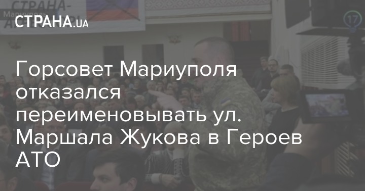 Большинство депутатов Мариупольского горсовета отказались сегодня проголосовать за переименование ул. Маршала Жукова в ул. Героев АТО. Представители партии "Сила людей" заявили, что по закону "О декоммунизации" до 21 февраля городской голова должен был закончить процесс переименования улиц и поэтому внесли вопрос об улице Героев АТО на сессию.