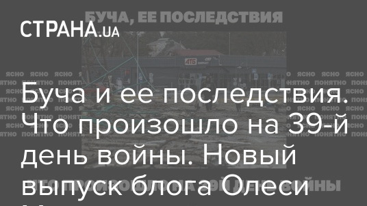 О хронике военных действий, ситуации на недавно освобожденных территориях, перспективах завершения войны и, в целом, о том, что изменилось на фронте на 39-й день войны в Украине разобралась Олеся Медведева в блоге "ЯсноПонятно".