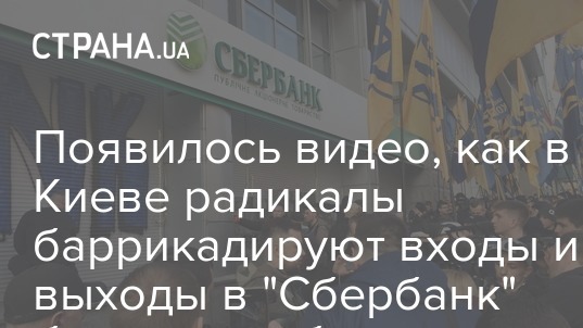Возле офиса "Сбербанка" собрались около сотник радикалов. Вход в здание банка закрыт роллетами, а группа активистов закладывает дверные проемы бетонными блоками.