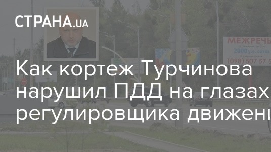 При выезде на "трассу Януковича" (ранее беглый президент ездил этой дорогой в свою резиденцию) в сторону Вышгорода стояла машина новой полиции, а сотрудники на перекрестке регулировали движение. Когда вдалеке появился кортеж силовика, коп перекрыл автомобильный поток и машины Турчинова выполнили поворот в неположенном месте, проигнорировав знак направления движения.