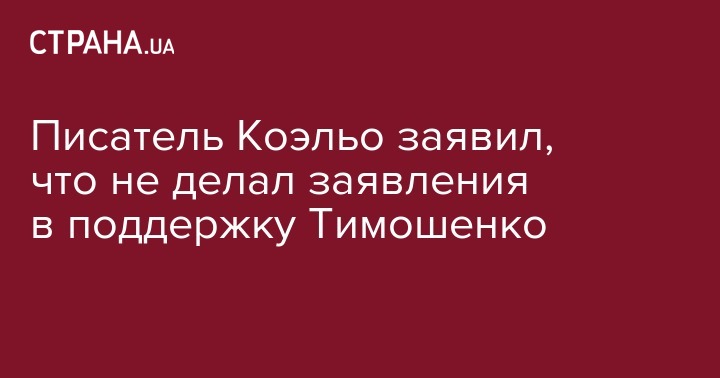 Известный бразильский писатель Пауло Коэльо отрицает, что высказывался в поддержку кандидата в президенты Украины Юлии Тимошенко. Об этом Коэльо написал в Twitter.
